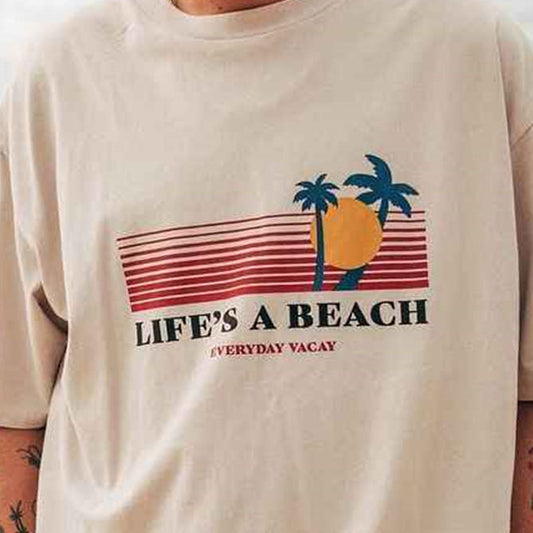 Leisure Vacation Personalized Letter Print Round Neck Short Sleeve T-Shirt