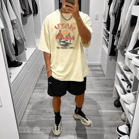 Retro Casual Fashion Street Letter Print Round Neck Short Sleeve T-Shirt