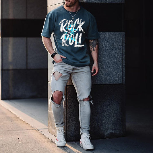 Rock Roll Music Graphic Print Statement Casual Men's T-Shirt