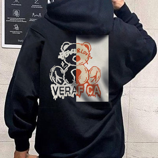Letter Bear Patchwork Graphic Print Loose Men's Sweatshirt