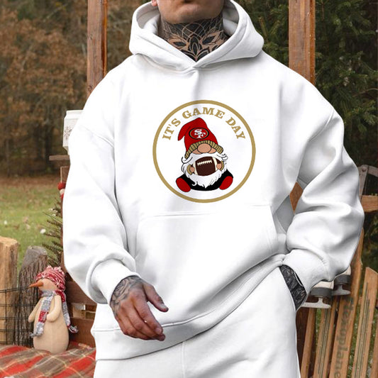 Xmas Viking Warrior Men's White Fleeced Hoodie