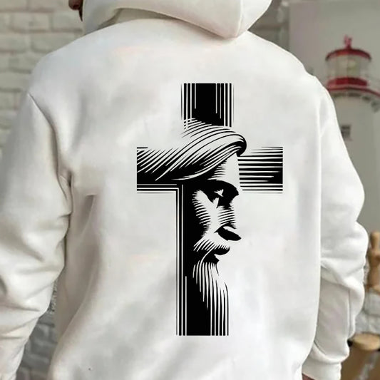 Men's Jesus and Cross Print Fleeced Hoodie