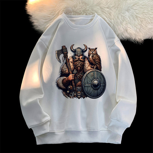 Viking Warrior and Owl Men's Crew Neck Sweatshirt