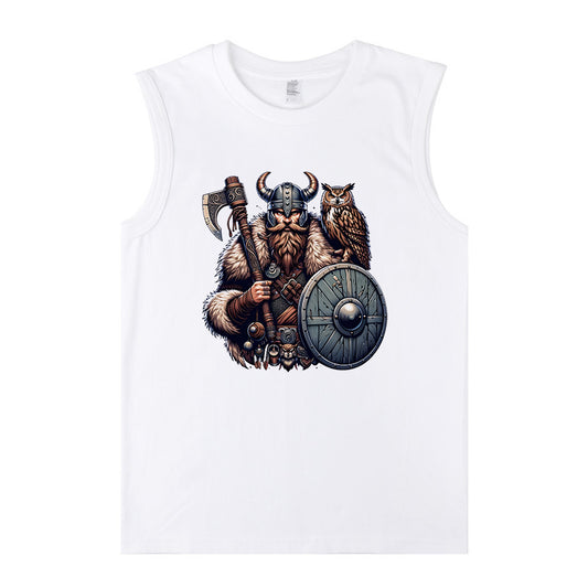 Viking Warrior and Owl Men's Cotton Tank Top