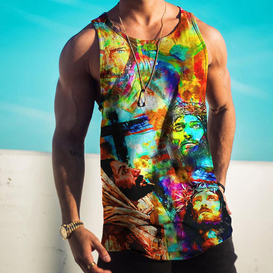Easter Cross Tie Dye Print Fashion Casual Vintage Tank Top