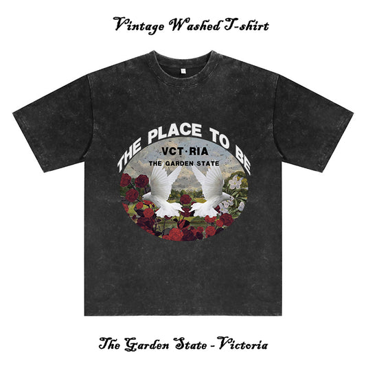 Peace Bird and Flores Victoria State Men's Washed Black Color Tee