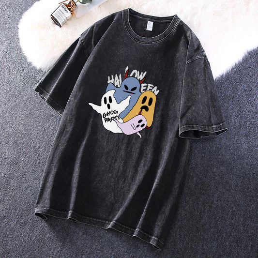Trick or Treat Ghost Print Men's Washed Black Color Tee