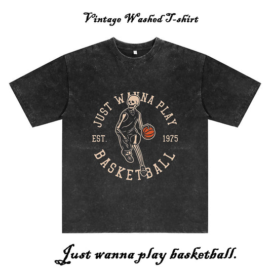 Skull's Love for Hoops Washed Black Color T-Shirt