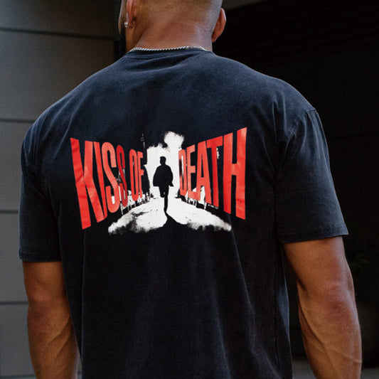 Kiss Death Print Casual Loose Men's Short Sleeve T-Shirt