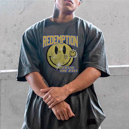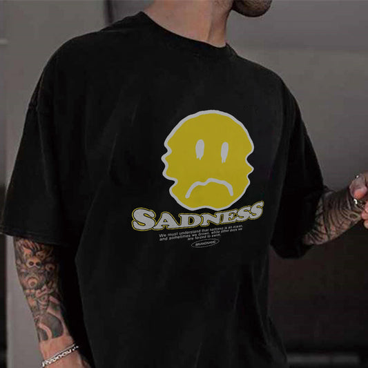 Smiley Graphic Print Casual Loose Men's Short Sleeve T-Shirt