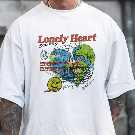 Lonely Heart Graphic Print Casual Loose Men's Short Sleeve T-Shirt