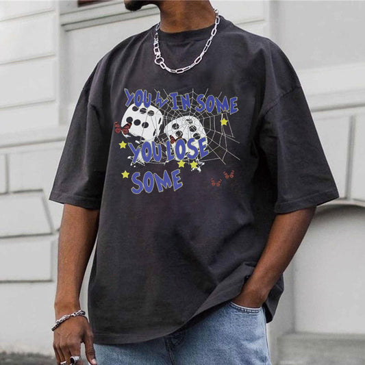 Dice Graphic Print Casual Loose Men's Short Sleeve T-Shirt
