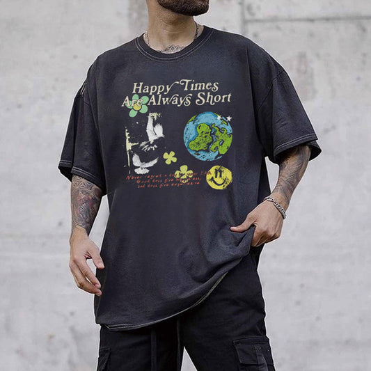 Earth Smiley Graphic Print Casual Loose Men's Short Sleeve T-Shirt