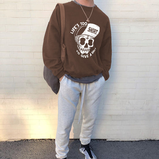 Skull Print Coffee Color Men's Sweatshirt