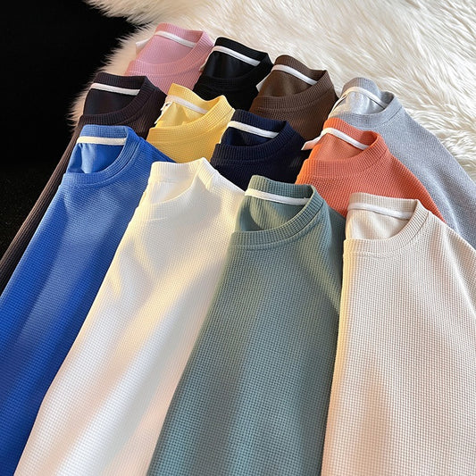 Waffle Texture Crew Neck Sweatshirt 280GSM