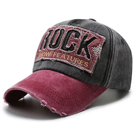 Rock Embroidered Vintage Colorblock Cap Hat