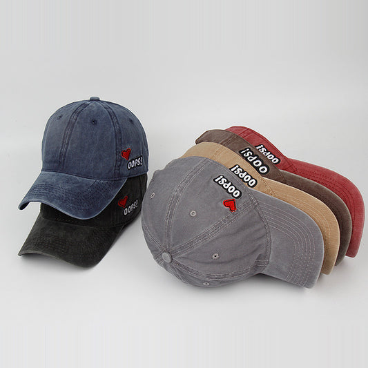 Embroidered Oops Letter Print with Heart Baseball Cap