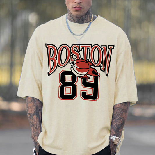 Retro Casual Fashion Street Letter Print Round Neck Short Sleeve T-Shirt