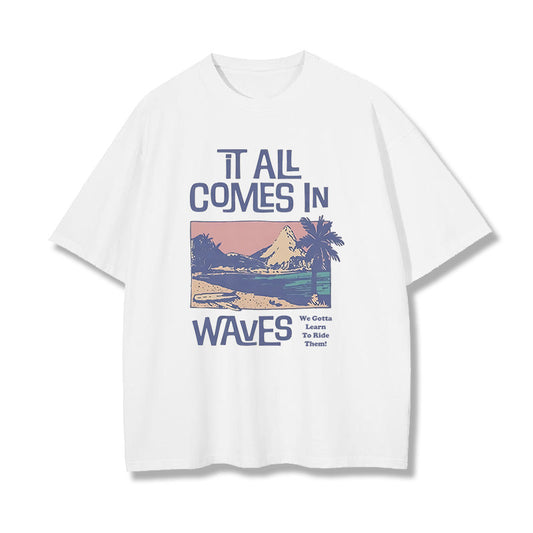 Men's Ocean Wave Graphic Tee Premium Cotton Beachwear