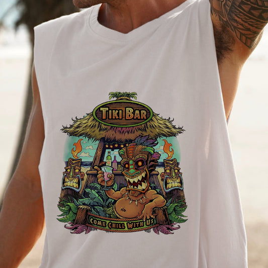 Tropical Vibes Tiki Bar Men's Casual Tank Top-B