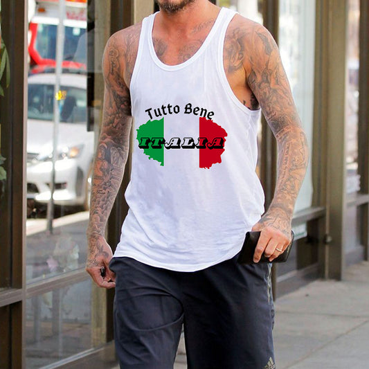Men's Italy Flag Print Cotton Tank Top-B