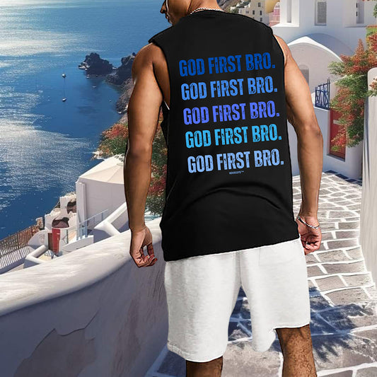 God First Bro. Men's Gradient Blue Letter Print Tank