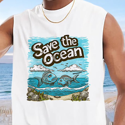 Fish Print Ocean Lover Men's Tank Top-C