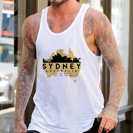 Men's Sydney Print Casual Tank Aussie Singlet-A
