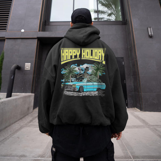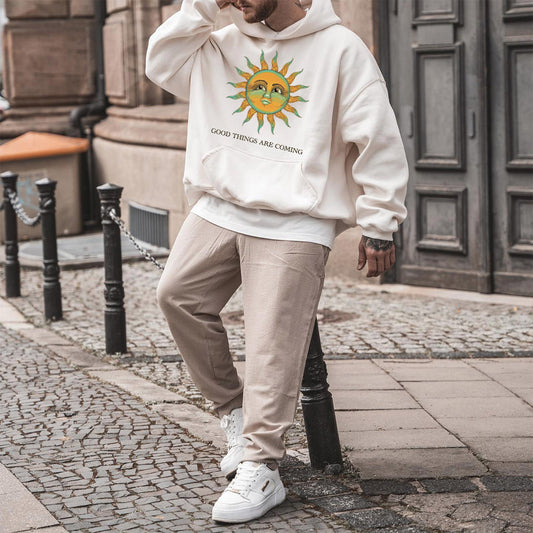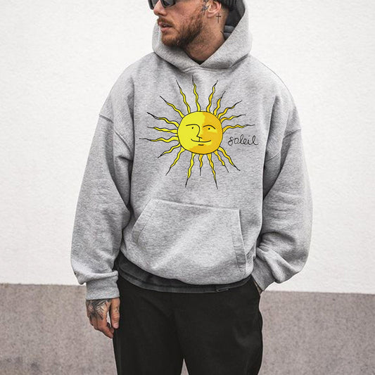 Sun & Alphabet Graphic Print Men's Oversize Hoodie