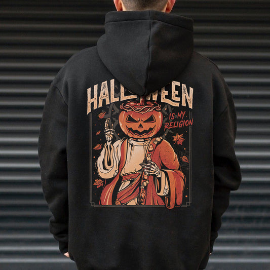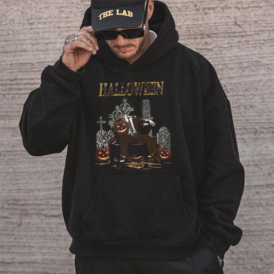 Halloween Pumpkin Graphic Casual Men's Hoodie Sweatshirt