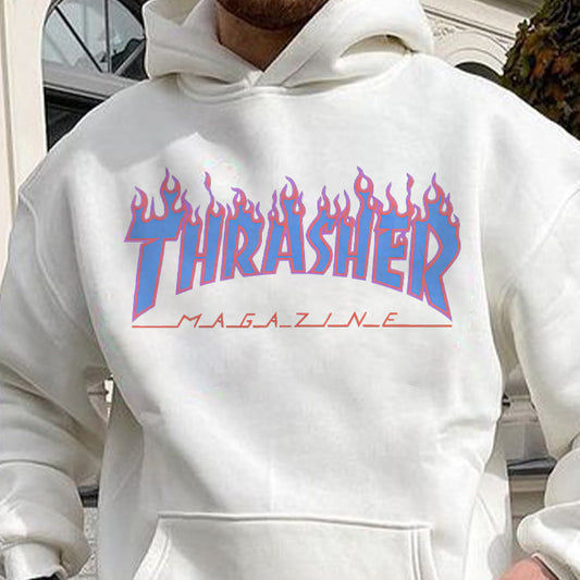 Sun & Letter Graphic Print Men's White Oversize Hoodie