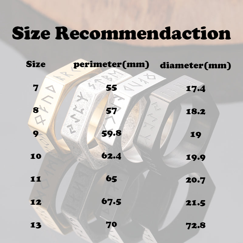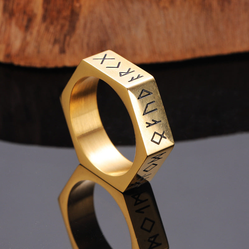 Viking Runes Hexagon Stainless Steel Geometric Ring