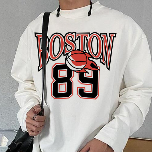Boston 89 Basketball Print Men's Long Sleeve T-Shirts-B