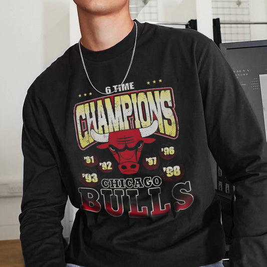 Champions Bull Basketball Print Men's Long Sleeve T-Shirts-B
