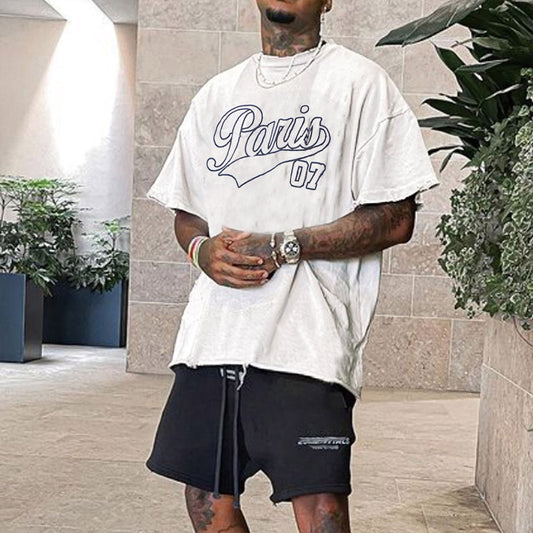 Paris Alphabet Graphic Print Loose Men's Short Sleeve T-Shirt