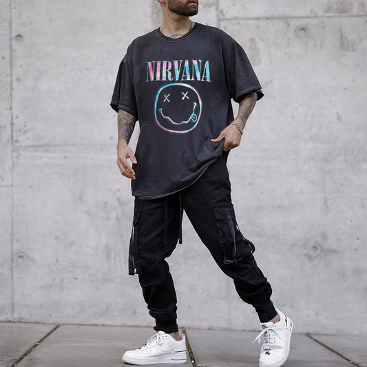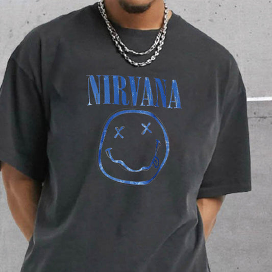 Nirvana Smiley Graphic Print Loose Men's Short Sleeve T-Shirt