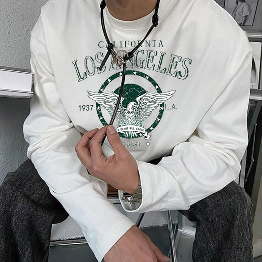 LA Eagle Print Men's Casual Long Sleeve T-Shirts-B