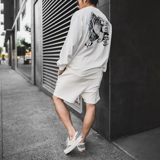 Money Print Men's Round Neck Long Sleeve T-Shirts-B
