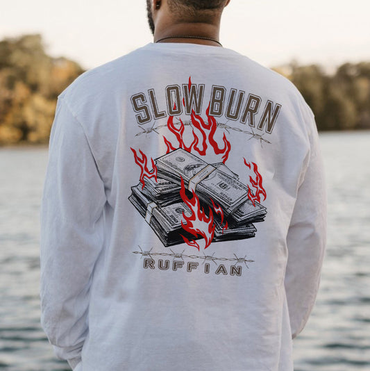 Slow Burn Graphic Print Casual Men's Long Sleeve T-Shirt-A