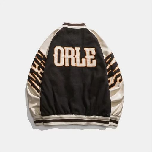 PU Leather Patchwork Jacket Men's Letter Embroidered Casual Baseball Jacket