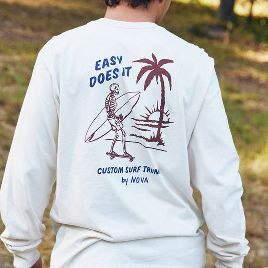 Skull Surfing Men's Casual Long Sleeve T-shirts-B
