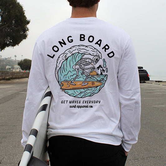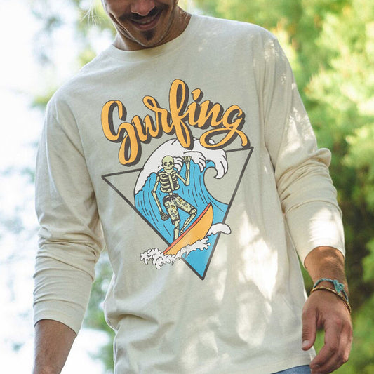 Skull Surfing Men's Casual Long Sleeve T-Shirts-A