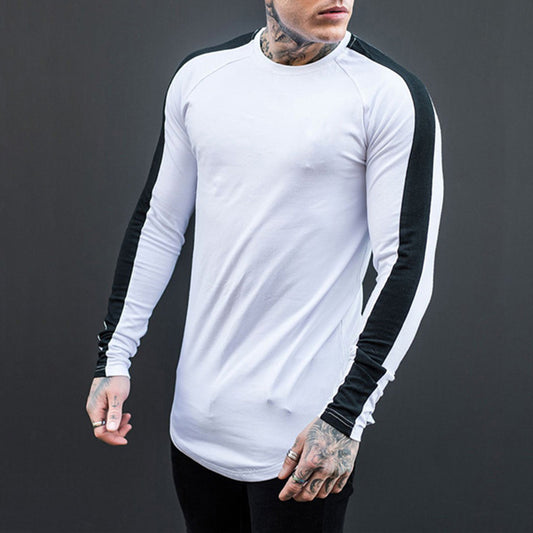 Round Neck Contrast Sports Men's Long Sleeve T-Shirt