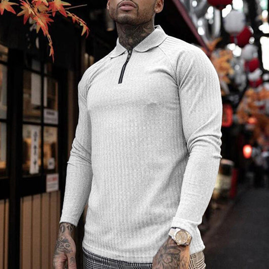 Lapel Zip Stretch Breathable Sports Men's Long Sleeve T-Shirt