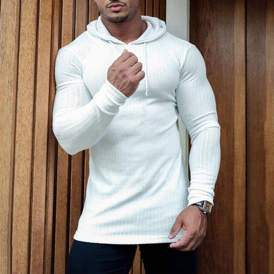 Plain Hooded Sports Men's Long Sleeve T-Shirt