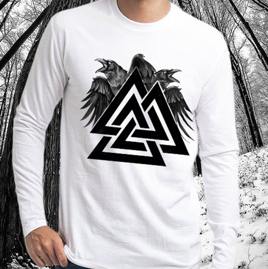 Norse Mythology Valknut and Ravens Print Men's Long Sleeve Tshirt