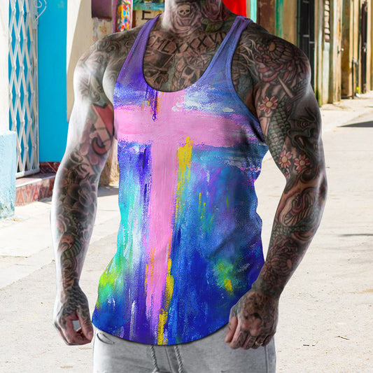 Trendy Street Easter Cross Cool Tie Dye Pattern Tank Top