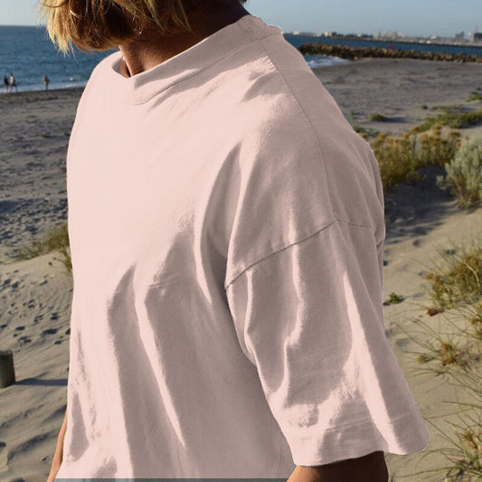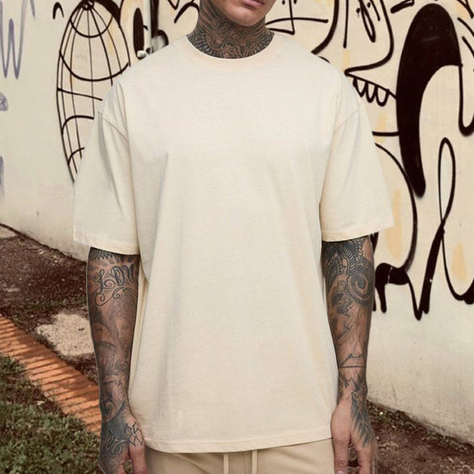 Casual Plain Loose Short Sleeve Men's Basic T-Shirt Beige Color
