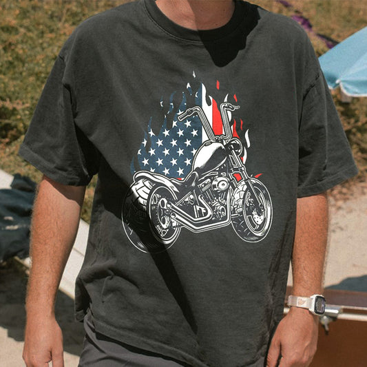 Moto Flag Graphic Print Casual Loose Men's T-Shirt