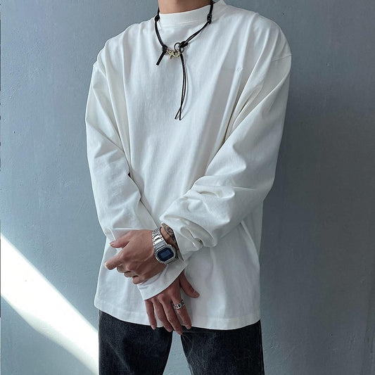Men's Pure Color Rib Cuff Long Sleeved T-shirts